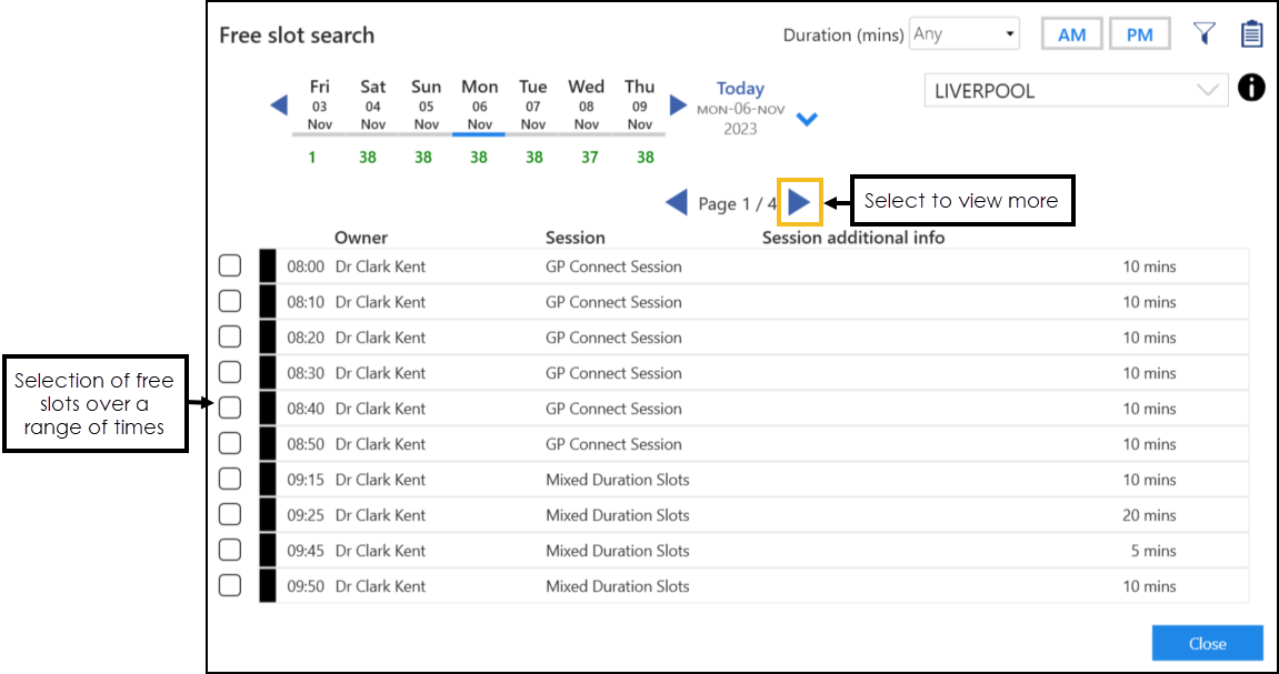 to display any free slots, this enables you to quickly find available appointments. You can also select to apply Filters