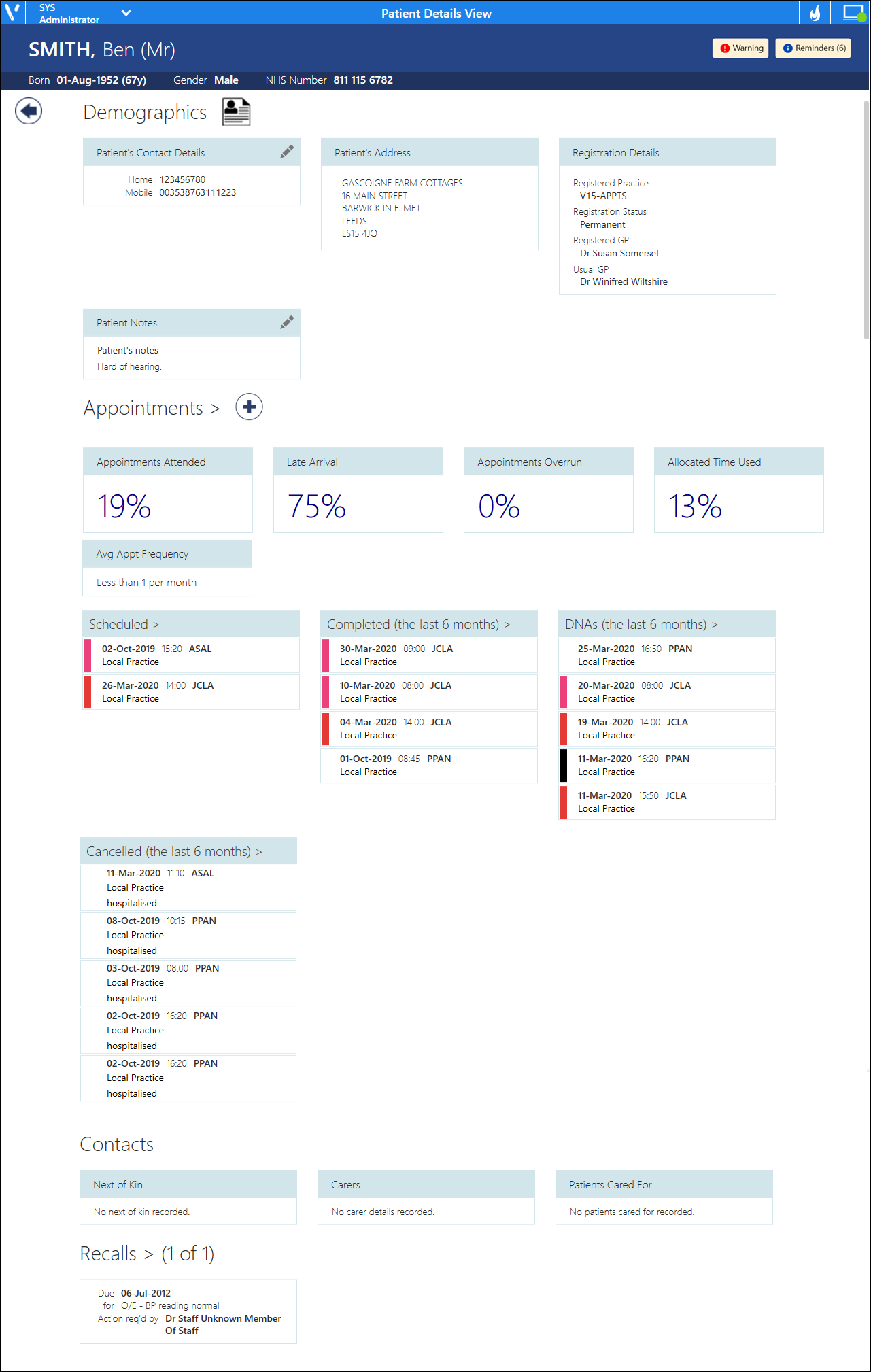 - Cancelled appointments in the last 6 months.