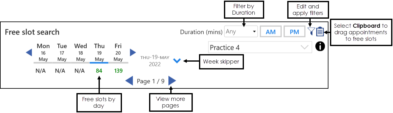 - AM or PM - Display free slots in the AM or PM.