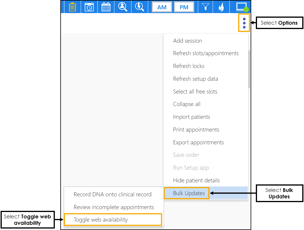 You can bulk update free appointment slots to make them available or unavailable for your patients to book online.