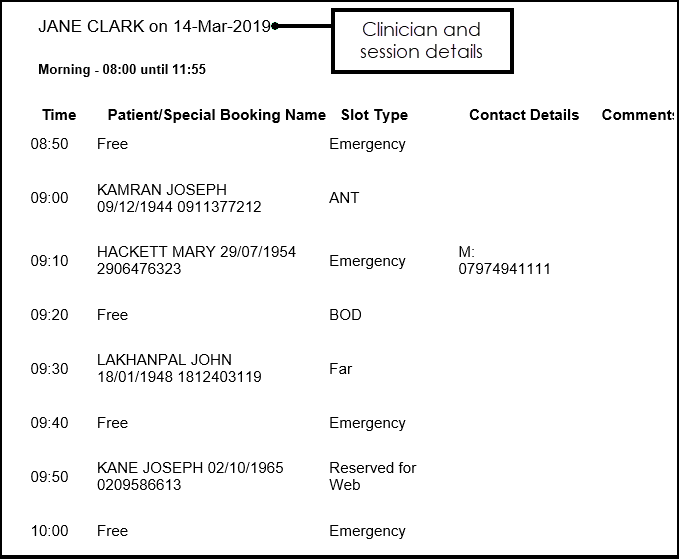 A printed list of today's appointments can be handy in the unlikely event of a system failure.