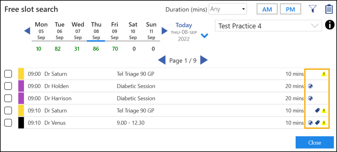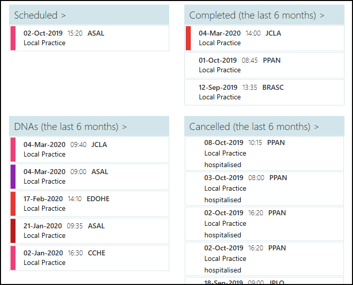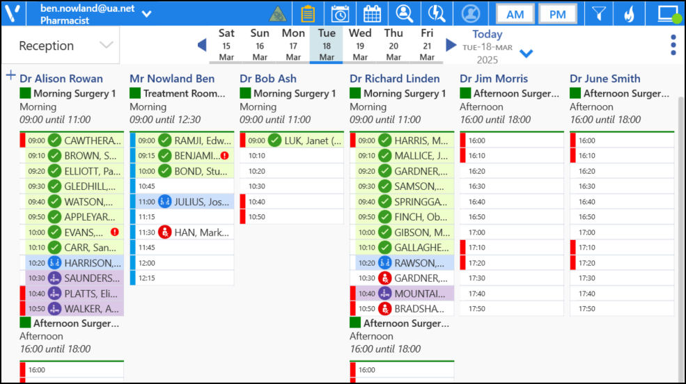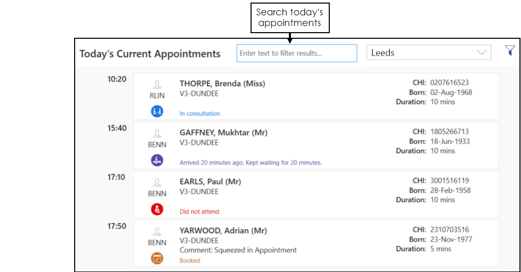 - The Current Appointments view replaces the previous Day view, this now shows booked appointments within the next hour and earlier DNAs.