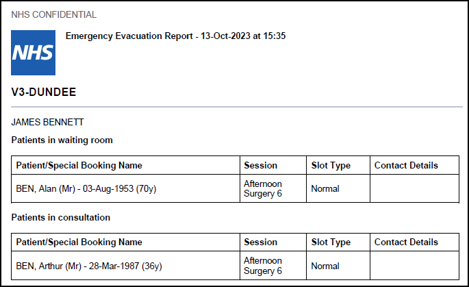 Emergency Evacuation Report - The Session and Slot Type details now print out on an Emergency Evacuation Report: