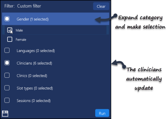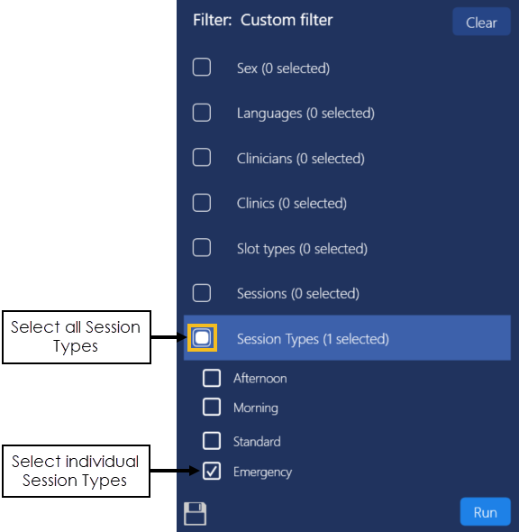 Filter by Session Type - You can now choose session types to filter by when creating and editing filters. For example, you might want to only display slots available in sessions added with an Emergency session type.