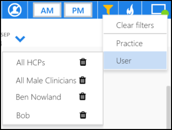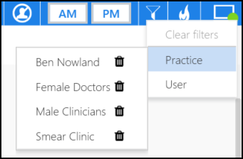 Practice/User Filters - When selecting a filter from any of the Appointments screens, you can now select from a list of either Practice or User filters.
