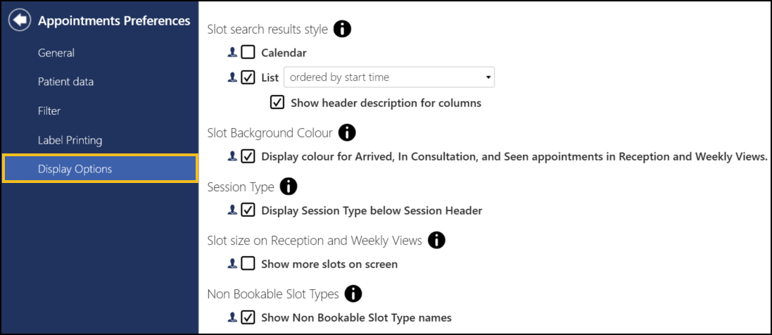 Slot Background Colour - To improve visibility of your appointment slot status, you can now choose to display background colours for Arrived, In Consultation or Seen appointments.