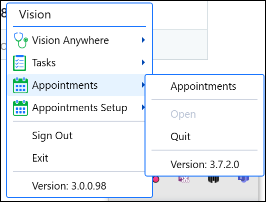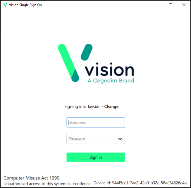 Single Sign On (SSO) - When you log in to Appointments from your desktop, you are now presented with the Vision Single Sign On screen: