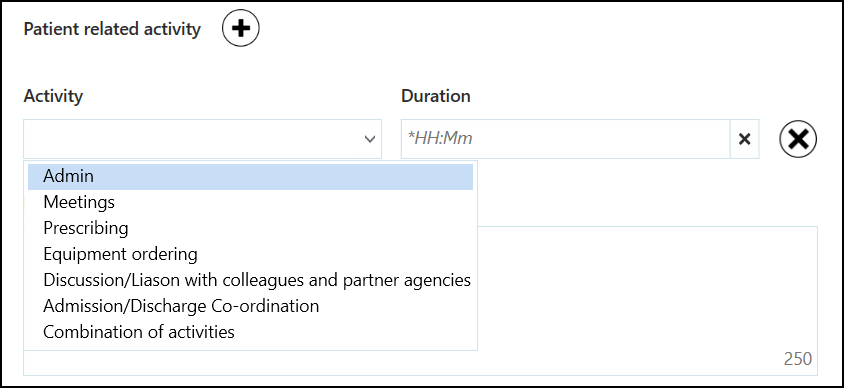 Note - Additional instances of Patient related activity can be recorded by selecting Add