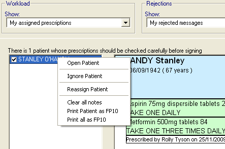 - Print Patient As FP10 - Converts the prescriptions for the currently selected patient to FP10 and prints them.