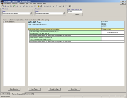 - Sign Selected – Allows you to sign all the prescriptions for the selected patients in the list. Once you have done this the patient names are removed from the review required list.