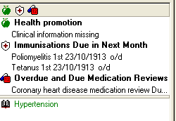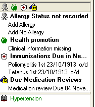 All due or overdue medication reviews appear in the Alerts pane. The text is the same as in the Therapy view:
