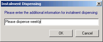 You can specify to the pharmacist that an item should be dispensed in instalments. To specify instalments: