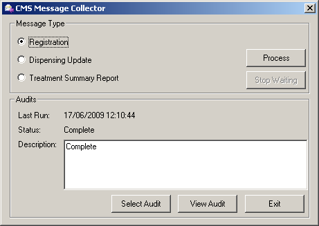 From the CMS Message Collector, you can view an audit trail of previous message collection processes for each message type. This functionality is particularly useful when trying to determine why an error has occurred and is used by the helpdesk.