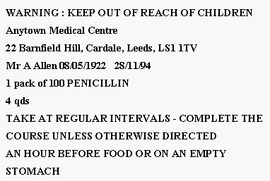 The design of the dispensing label has been set up in a standard way as a default, but you may want or need to alter the design, for instance, if you use labels with pre-printed warnings or practice details.