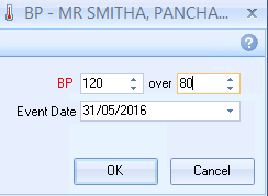 The Blood Pressure data entry screen can be used to quickly record the blood pressure values.