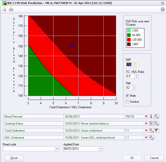 The JBS 2 CVD Risk Calculator is based on the Joint British Soieties guidelines for the prevention of CVD. It uses existing data such as Age/Sex, Blood Pressure, Cholesterol and Smoking Status to calculate a predicted risk.