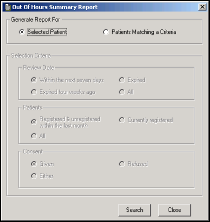 - Click Search and select the patient required from Select Patient in the usual way.