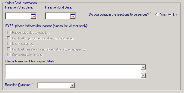 - Do you consider the reactions to be serious? - This is a mandatory entry. Select Yes or No: