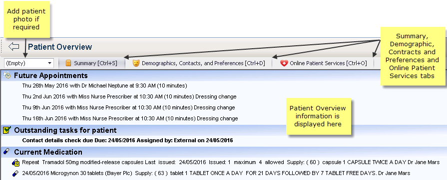 Patient Overview app is aimed at simplifying the workload of reception and administration staff. It provides a range of functionality within a single module enabling the management of multiple patient requests for a selected patient in one place, where as in the past you would have had to access various Vision modules.
