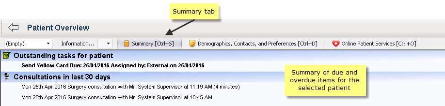 - Outstanding Tasks for Patient - Displays all outstanding tasks for the currently selected patient, irrespective of assignment. Right-mouse click on a task for the following options: