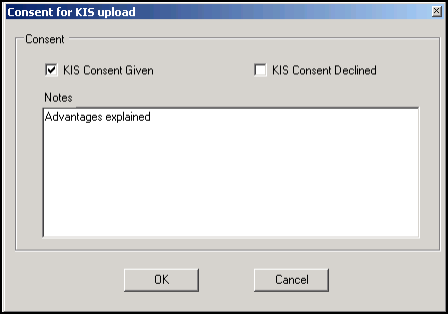 - KIS Consent Given – Tick if the patient agrees to a KIS upload.