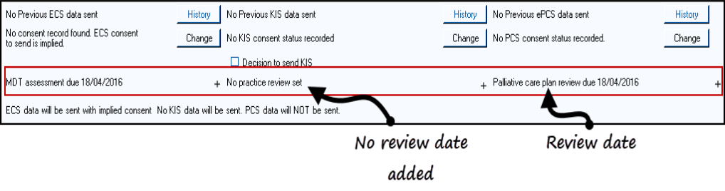 From the Summary and Consent Status section, you can add and update the following review dates: