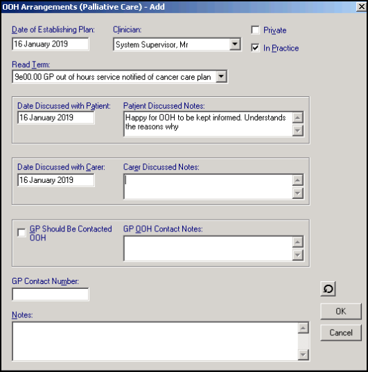 - From the Palliative Care Summary tab, select Additional OOH Arrangements, and then Add.