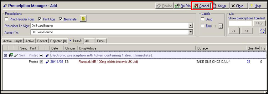 Prescribers, or other authorised staff working in the GP practice where the prescription was generated, can cancel electronic prescriptions at any point until they are downloaded by the dispensing contractor.