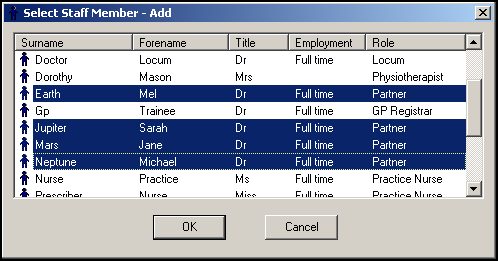 - The Select Staff Member - Add screen displays, whilst holding <Ctrl> (missing or bad snippet), select all members of staff that you want to add to the (Undefined variable: General.GP2GP) group then release <Ctrl>: