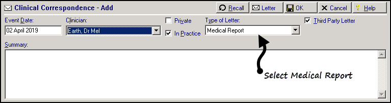 Important - Ensure you only have one instance of Consultation Manager open when generating a report, to prevent generating a report for the wrong patient.