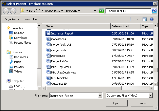 An Insurance Report template allows you to create a medical report for insurance purposes as a Word document. It automatically extracts data from your patient records to produce a report that can then be edited.