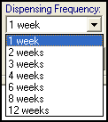 - Dispensing Frequency – Select a dispensing frequency from 1,2,3,4,6,8,12, 24 and 48 weeks if you have chosen a 48 week medication term: