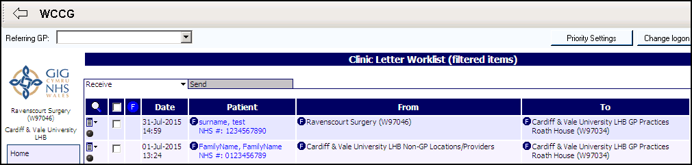 Clinic letters can be sent electronically via the WCCG system. To receive and process a clinic letter: