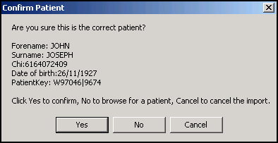 . - If you had not selected a patient within Consultation Manager before accessing the WCCG system, the Confirm Patient Message displays, select: