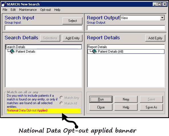 No records for patients that have selected to opt out, via www.nhs.uk/your-nhs-data-matters or by having Read term 9Nu0 Dissent from secondary use of GP patient identifiable data recorded are included in the search output.