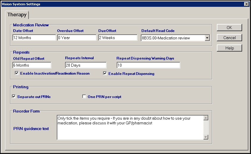 Medication Review – Set your defaults for medication reviews. You can use the following abbreviations: D (Days), M (Months), Y (Years), for example 6M = 6 months: