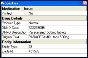• Right click on a line lets you choose either Key which lists the drug type icons ( ) or Properties. This shows the DM+D code for that item - only items with DM+D codes are included in EPS while those without such codes continue to be printed as paper prescriptions.