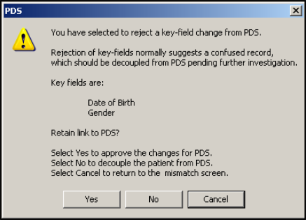 - Select No to decouple the record pending investigation. PDS updates are no longer sent