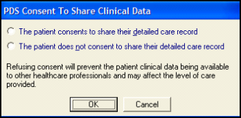 (within Patient Details – Preferences) if you have sufficient RBAC rights. Consent details are not stored locally but on the PDS. If you change consent details, the new details are held in memory and sent with any other demographic changes at the end of the patient session.
