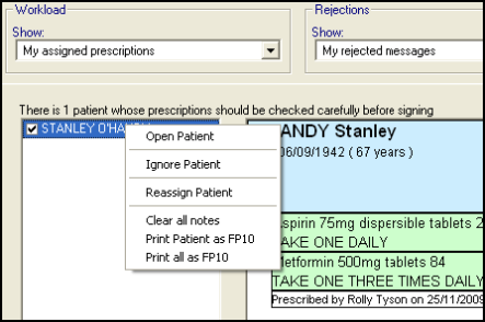 - Print Patient As FP10 - Converts the prescriptions for the currently selected patient to FP10 and prints them.