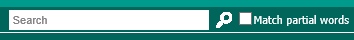 The Search facility is located at the top right of the Help window. The 'Match partial words' checkbox allows you to expand your search by listing all partial words.
