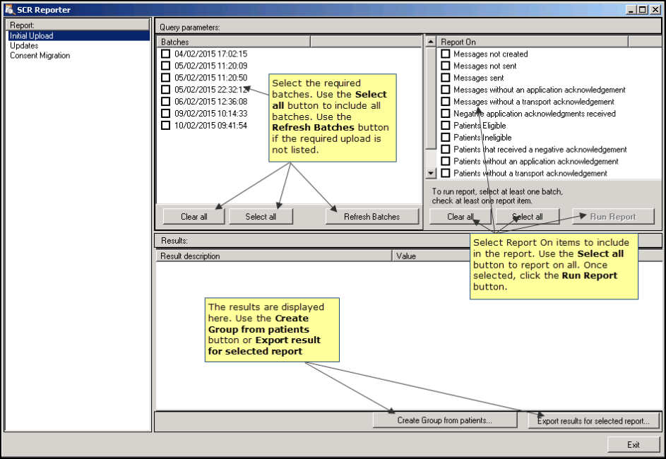 The Initial Upload Report enables you to search for messaging errors or find ineligible patients for example, that were identified or occurred during the Initial Upload.
