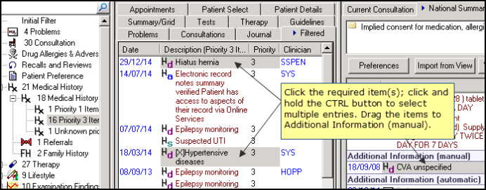 - In Consultation Manager, select a patient, open a consultation and view the National Summary.