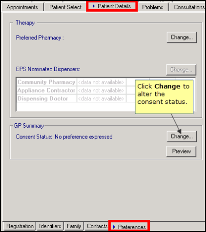 Whilst the patients registration status is "Applied" their current consent status can be viewed in Consultation Manager - Patient Detail - Preferences. When their registration is updated to "Permanent" their consent status is also available to view on the National Summary Tab.