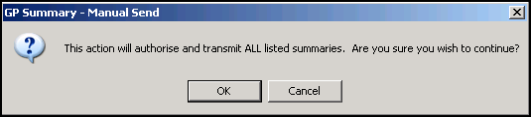 - You are prompted "This action will authorise and transmit ALL listed summaries. Are you sure you wish to continue?" click OK.
