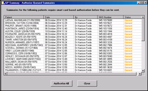 Note - Summaries queued when a Clinician has not logged in with a Smartcard will be automatically sent from the queue when the Clinician next logs in, unless they have already been manually authorised.