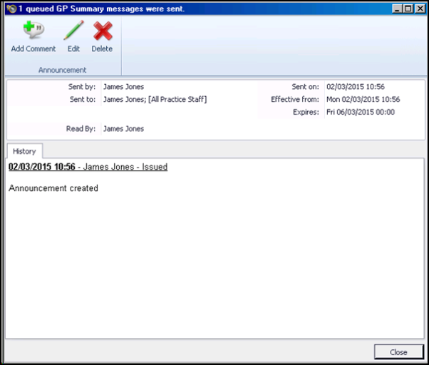 When a user works offline, any SCR updates will be queued until the user next logs in with their Smartcard. When the queued message is successfully sent a Daybook notification is delivered to the originator of the SCR message to inform them their patient's SCR update has been sent. The notification may contain multiple patient details, dependant on the items queued.