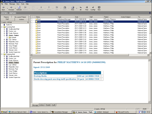 Generation of the prescription message is undertaken by Mail Manager. Prescription Manager creates the XML message that contains all the data required by Mail Manager to generate a valid ETP 2 message.