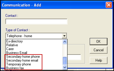 Vision allows you to add multiple communication/telephone details of each type (ie you can have 2 business numbers). However, synchronisation with the PDS is only supported for one of each type of communication/telephone detail as listed in Type of Contact.