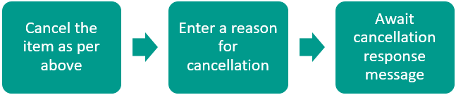 When an electronic prescription is cancelled, a reason for the cancellation must be given. A message is then transmitted to the Electronic Prescription Service and you must await a response. Transmitted therapy is not deleted until a successful cancellation acknowledgement has been received.